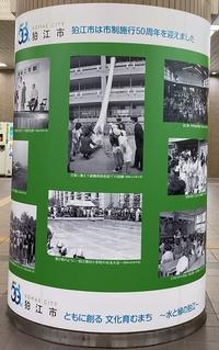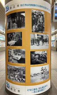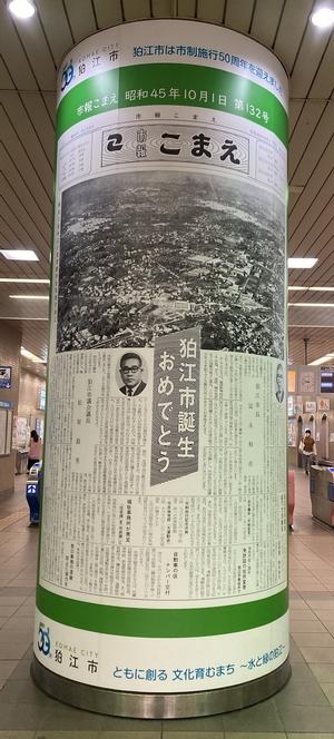 狛江駅に市制施行50周年記念の特別装飾を施しました。