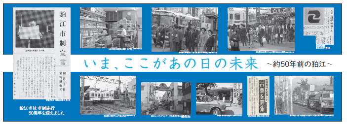 特別装飾として、狛江市が誕生した50年前(昭和45年頃)の暮らしぶりが分かる写真と、