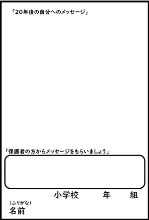 今回は「保護者の方からメッセージ」をもらう欄を作成し、20年後へのメッセージを書いていただきました。