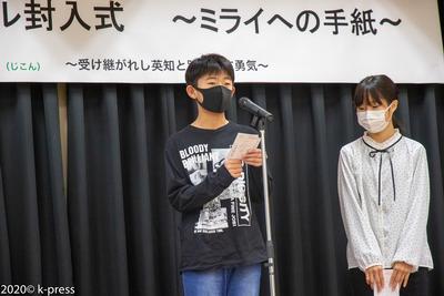 小学生代表として、狛江市立和泉小学校6年生の中村 勇斗さんと、河端 美空さんが参加し、手紙を読み上げた後に、直接タイムカプセルに自分の手紙を入れてもらいました。