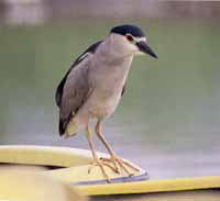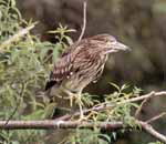 留鳥として多摩川に数多く、特に朝夕水ぎわでよく見られます。全長57センチ。成鳥は背中が黒っぽい灰色です。若鳥は全身褐色で、白い斑点があるのでホシゴイとも呼ばれています。幼鳥は目が黄色です。夜行性ですが、昼間も行動し、魚や昆虫などを捕食します。(写真右:成鳥)