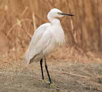 サギ類の中では最も一般的に見られる鳥で、多摩川でも多く、また野川でもよく見られます。全長61センチ。黒いくちばしは一年中変わらず、足も黒く、指だけが黄色くイエロースリッパと呼ばれています。水の中に入って魚などを捕食します。(写真右:冬羽)
