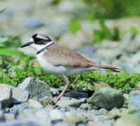 数は少ないですが、多摩川で繁殖していて、一年中観察されます。全長21センチ。コチドリによく似ていますが、少し大きく、くちばしがやや長く、目を縁どる黄色の輪の細いところが、コチドリと異なります。