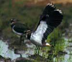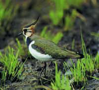 一般的には冬鳥ですが、多摩川では渡りの季節にしばしば観察されます。全長32センチ。キジバトくらいの大きさで、頭に長くピンとはね上がった黒い冠羽(かんう)があり、背面が金属光沢の濃い緑色で鮮やかです。飛ぶと腹と翼の下面の白さが目立ちます。(写真:ともに成鳥)