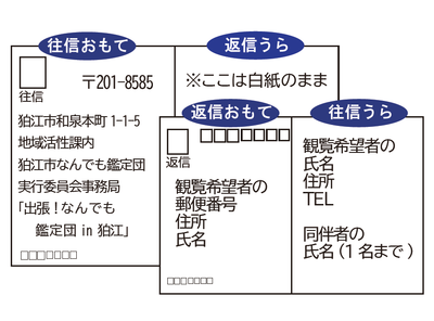 - <往復はがきの場合> 下記の記入例をご参照ください。