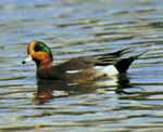 北アメリカ大陸で繁殖し、日本にはまれな冬鳥として渡来します。多摩川ではヒドリガモなどに混じっていることがまれにあります。全長48センチ。オスは頭と額が灰色で白っぽく、目から後頭部にかけて濃い緑色です。
