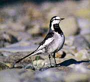 河川ではおもに下流域に生息し、街なかの畑や空き地でも見られます。また街路樹やビルなどで集団でねぐらをとります。全長21センチ。白い顔に黒い過眼線があります。夏羽は頭部と胸の前掛け模様が黒く、背は黒色です。冬羽は背が灰色になります。