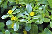 畑や道端など、日当たりの良い所に生える1年草。全体が肉質で毛がなく、茎は赤みを帯びよく枝分かれをして地を這うように広がる。葉は対生が多く、長さ1.5-2.5㎝の長楕円形で両面につやがある。花期は7〜9月。花は直径6〜8㎜の黄色でふつう5弁。果実は熟すと上部のふたがとれて細かい種子を出す。