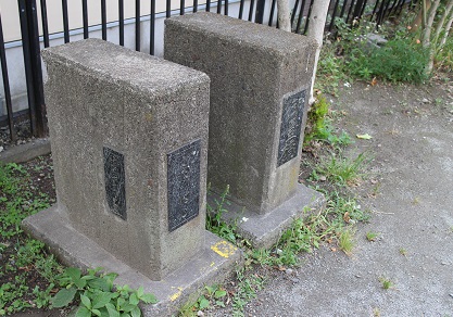 江戸時代の寛政年間(1789~1801)の史料に「五大橋」という名称が見られ、この頃には「五大橋」が架かっていたことが確認できます。また、明治時代初めの史料から、当時は長さ約3.6m、幅約1.5mの石造の橋だったことがわかります。「御台橋」という字をあてるようになったのは、昭和36年(1961)の架け替えの時のようです。現在、緑道内には最後に架けられていた橋の親柱がモニュメントとして残されています。 |