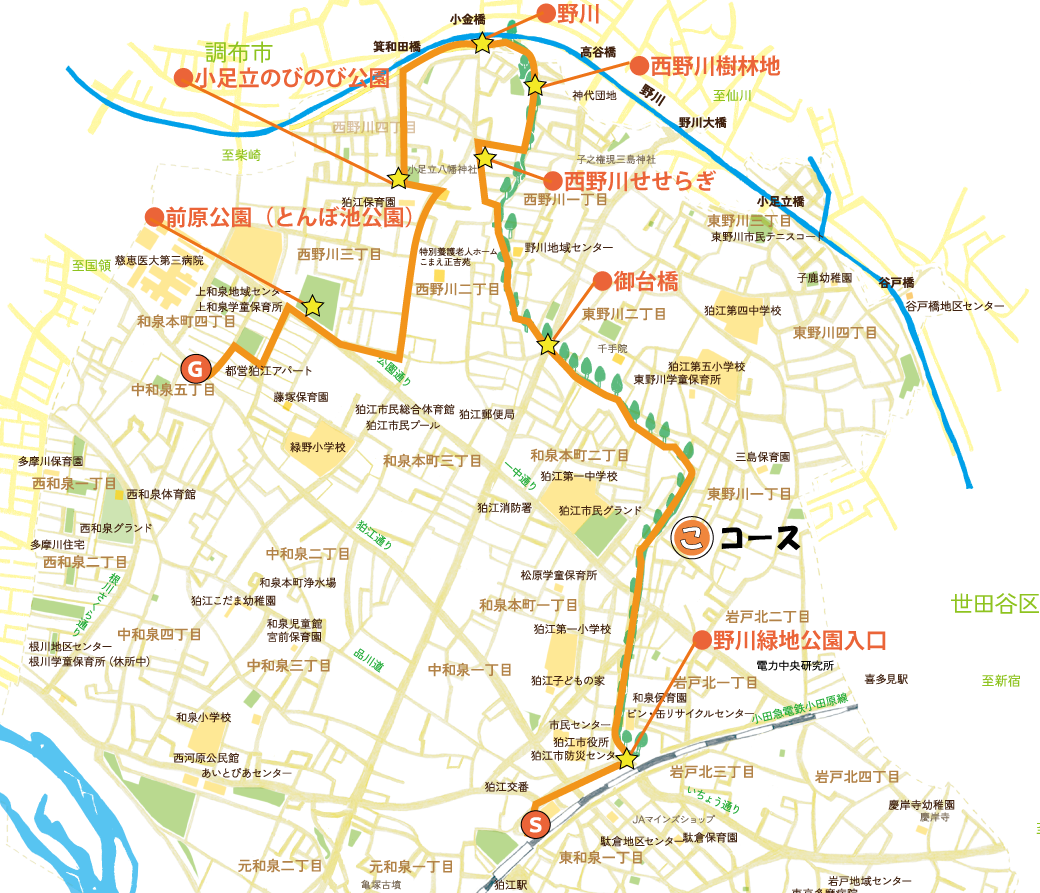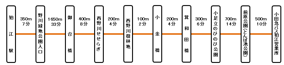| 西野川せせらぎ (狛江市西野川2-33付近) | |