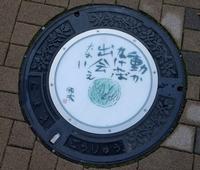 小池邦夫氏がデザインした絵手紙デザインマンホールを狛江駅前の歩道に24カ所設置しています。