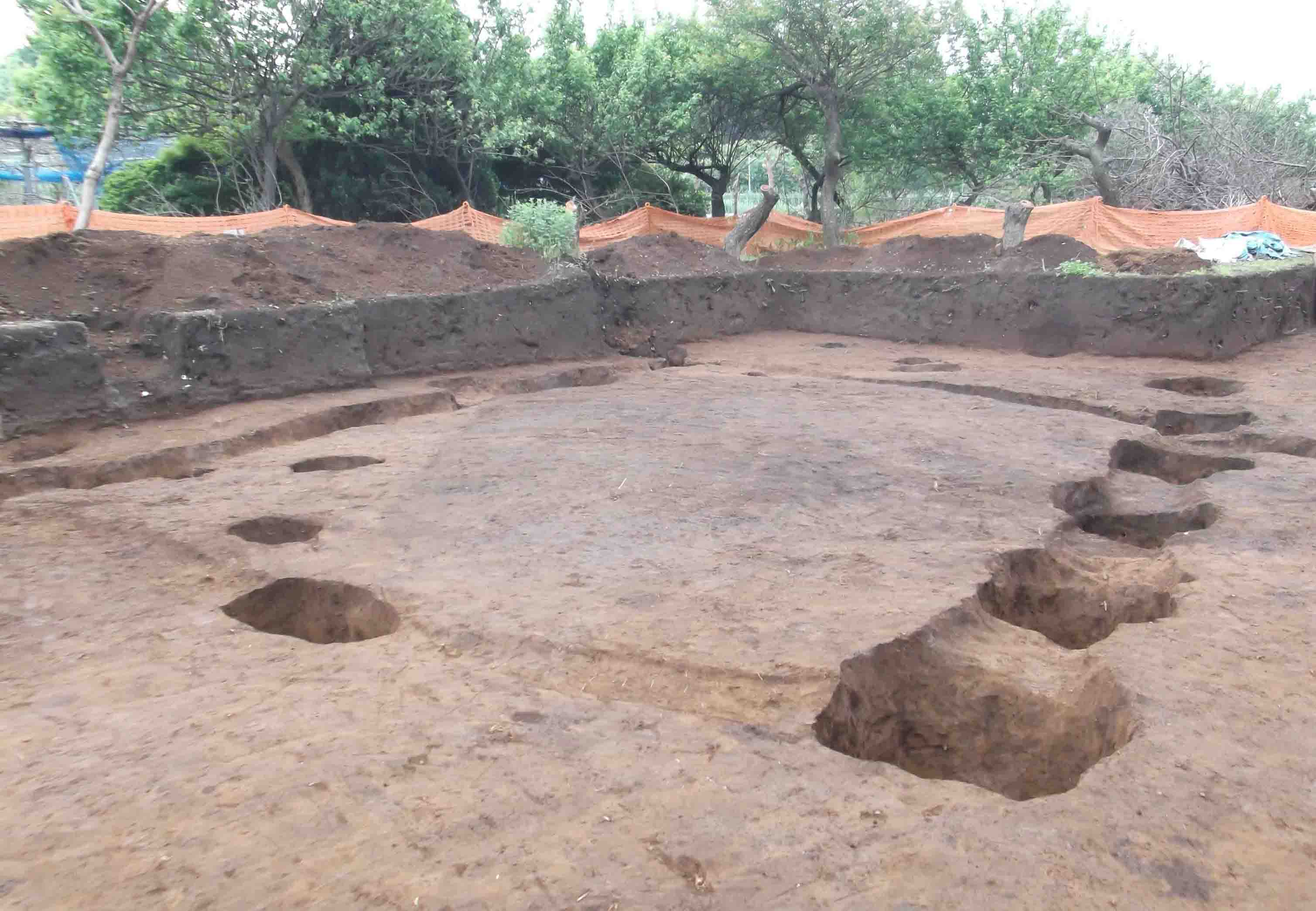 縄文・弥生時代 弁財天池周辺の弁財天池遺跡からは、縄文時代以降の住居跡が多く発見され、人々の生活の痕跡が色濃く見られます。例えば、縄文時代の落とし穴の遺構(写真1)が発見されていますが、これは、水を求めに来た動物を捕まえるためのものと考えられます。 |