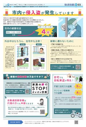 安心で安全なまちを目指して「安心安全通信」を年3回発行し、市内に全戸配布しています。