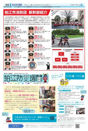 「安心安全通信」は、防災・防犯・消防関係の最新情報などを掲載し、年3回発行、狛江市内全戸に配布される広報紙です。