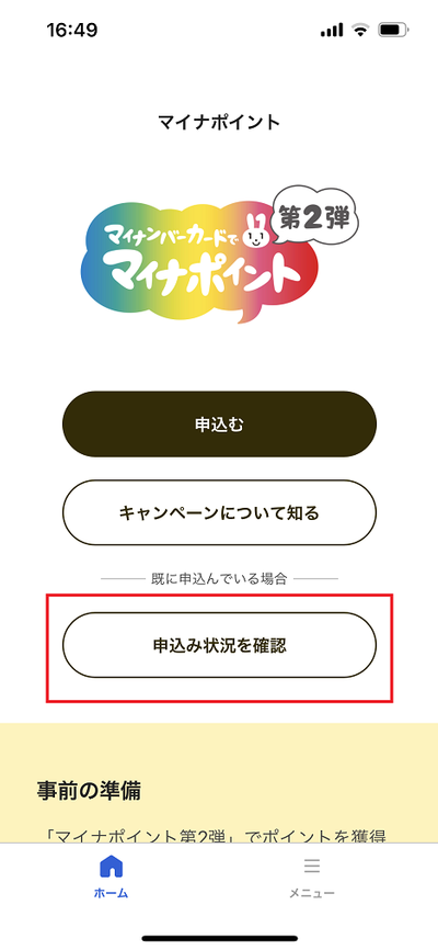 マイナポイントの付与状況の確認について