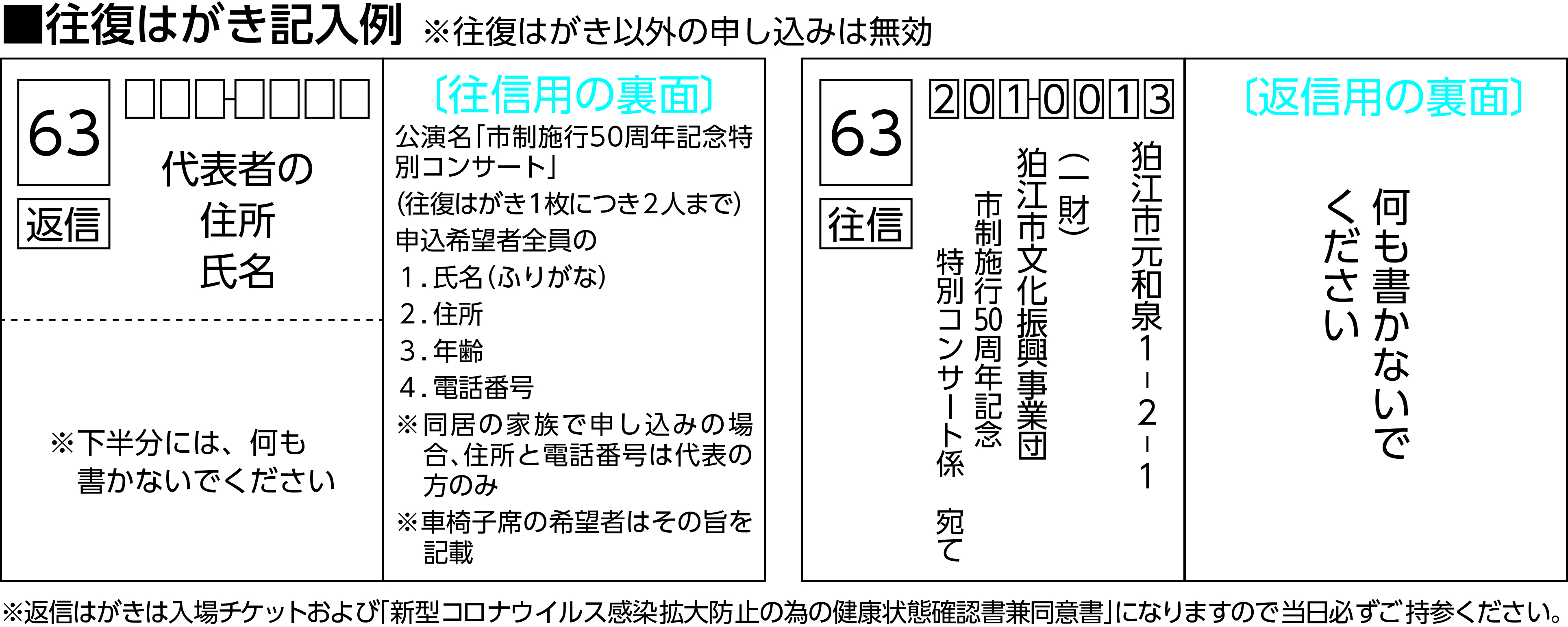 ※新型コロナウイルス感染症の影響等により、延期または中止となる場合があります。その際、往復はがき分の料金は、申込者の負担となりますのでご了承ください。