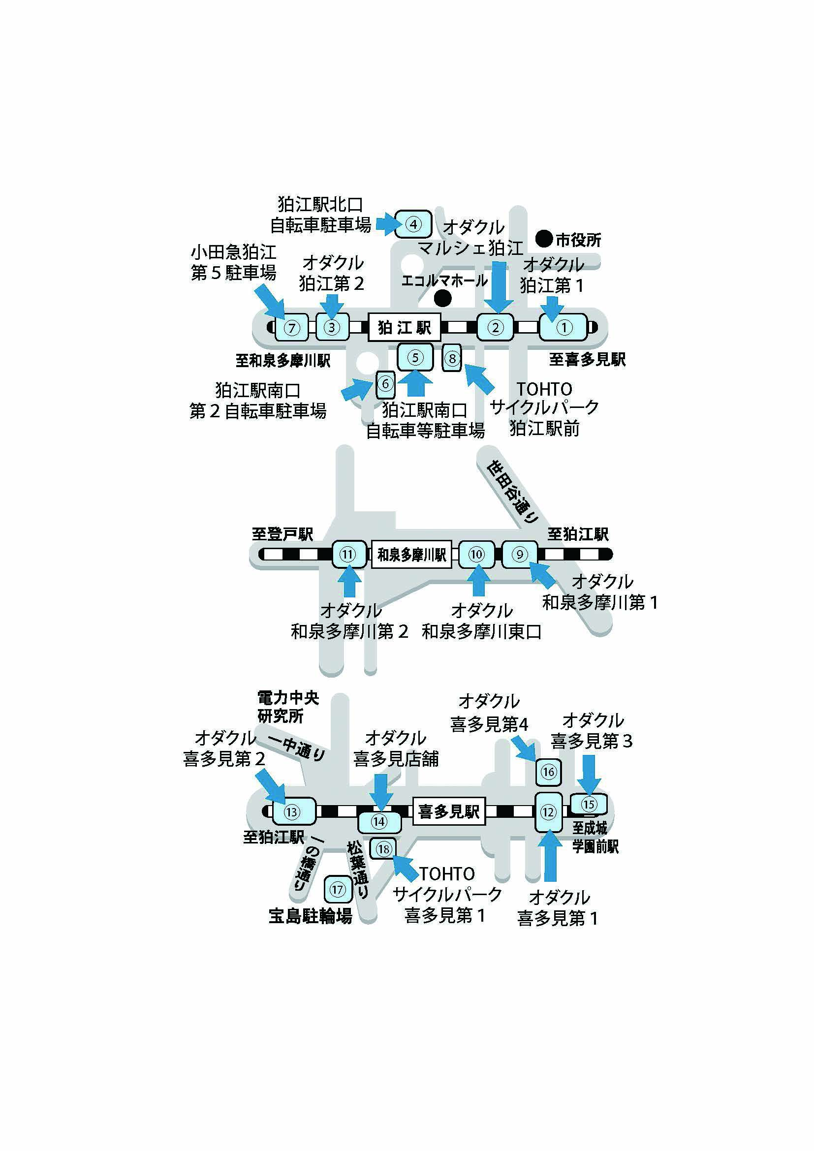 | (18) | TOHTOサイクルパーク喜多見第1 | 0120(009)910(※2) | 約60台 |