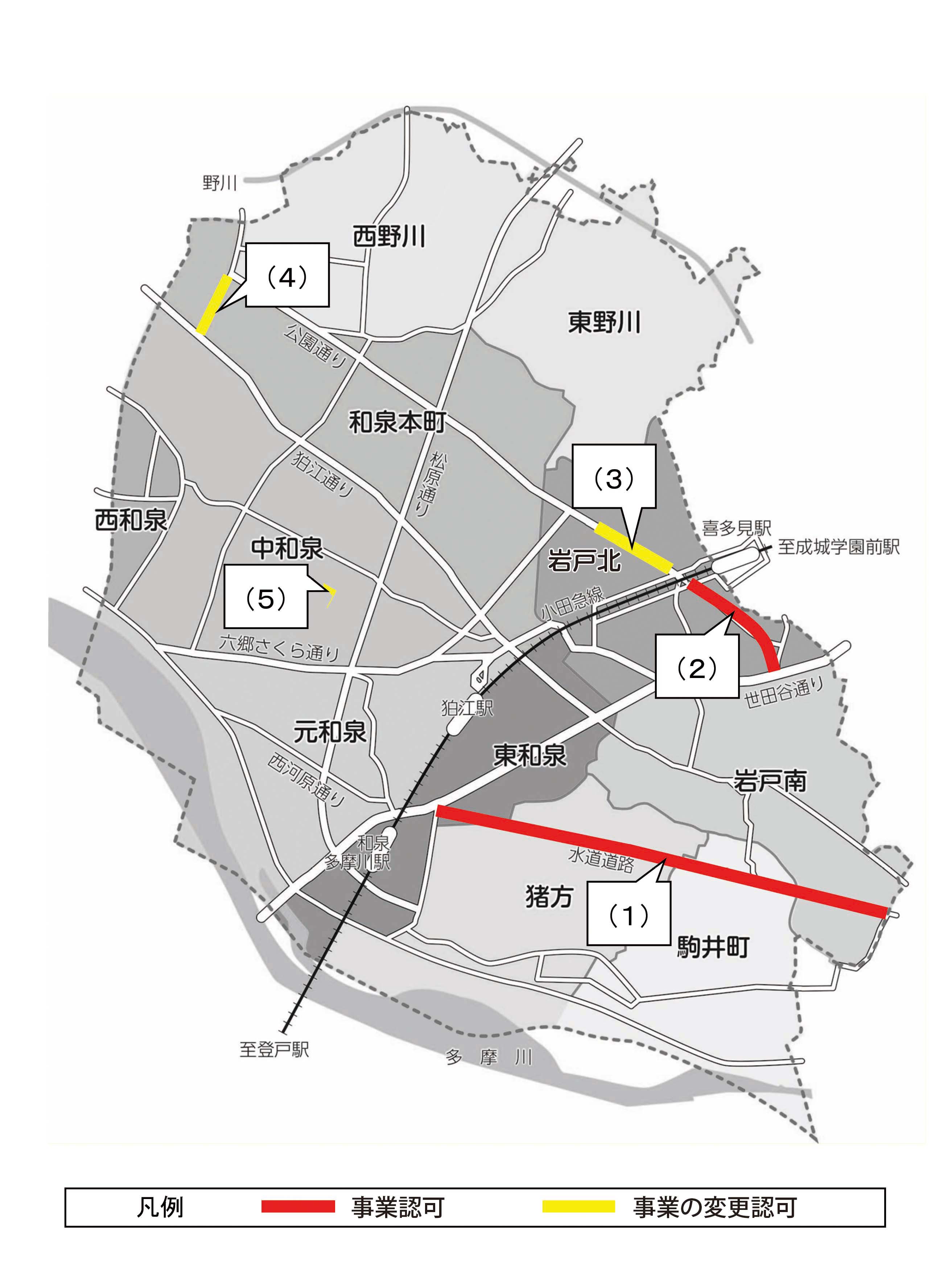 | (1) | 調布都市計画道路事業3・4・2号水道道路線(岩戸南四丁目、駒井町一丁目、駒井町二丁目、猪方一丁目、猪方二丁目、猪方三丁目、東和泉二丁目および東和泉三丁目地内) | 令和12年 3月31日まで |