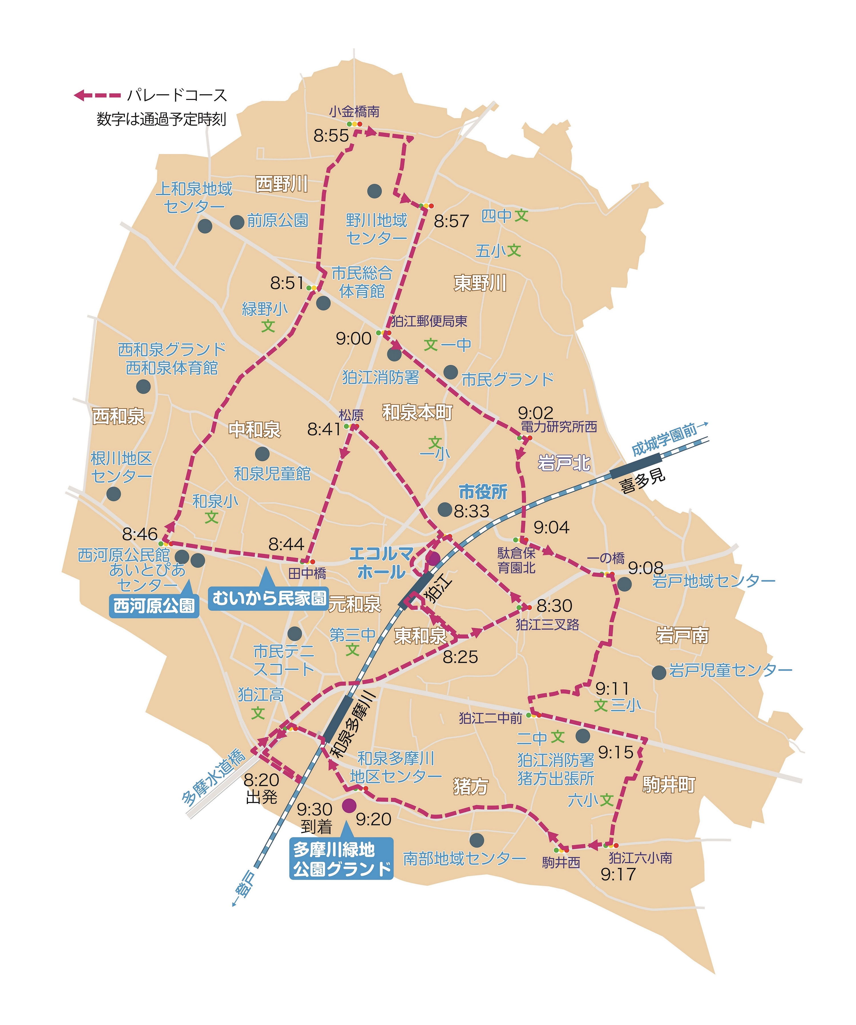 ※「第52回狛江多摩川ロードレース」は、西河原公園が集合場所