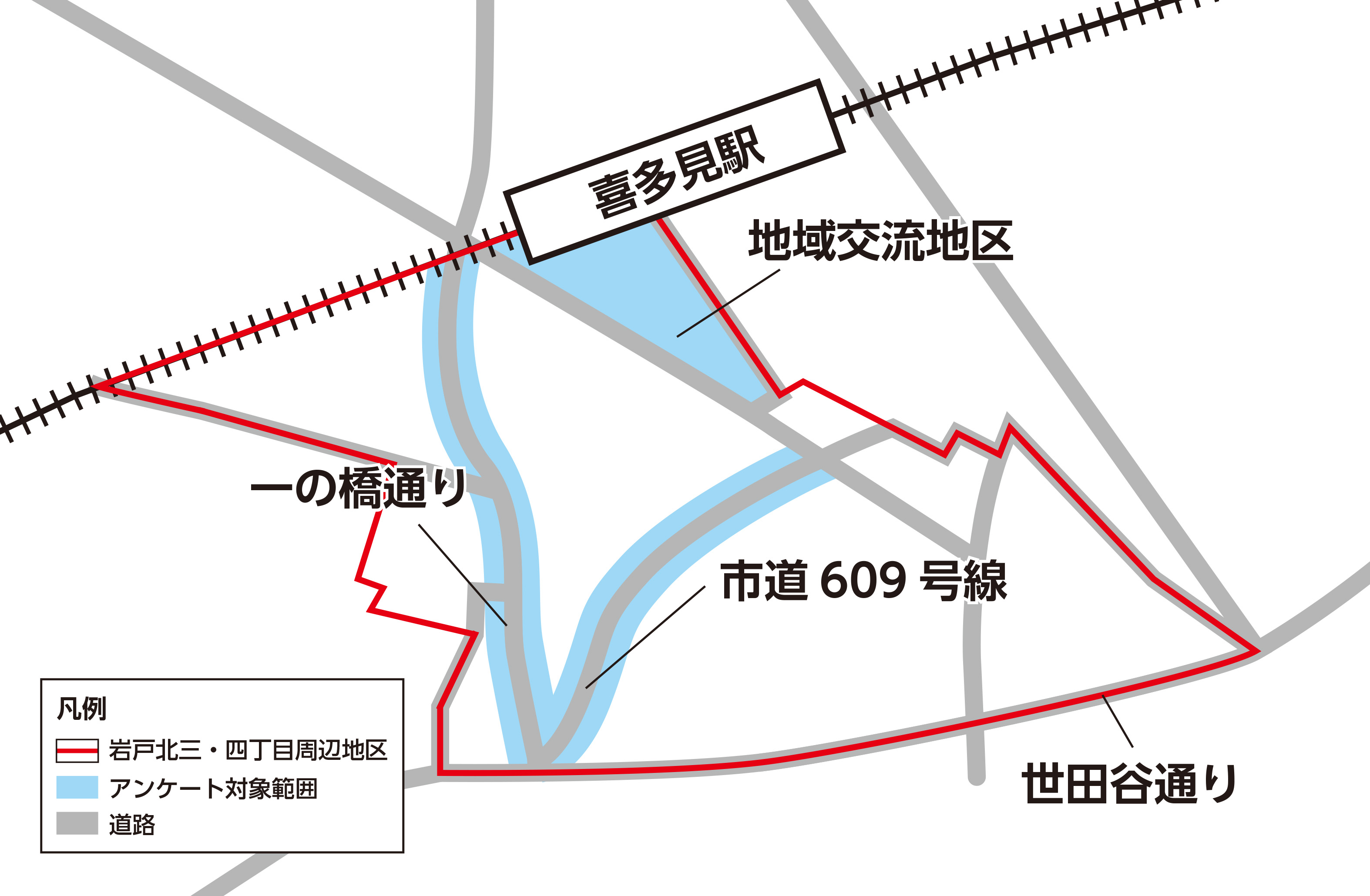 現在事業中の調布都市計画道路3・4・16号線(岩戸北区間)の道路事業に合わせて、沿道および周辺地域において、地区計画等のまちづくりのルールの策定に向けた検討を進めています。喜多見駅周辺のまちの将来像や方向性、道路拡幅について、岩戸北三・四丁目周辺地区の市民や土地所有者の皆さんとともに検討するために、アンケートを送付します。