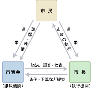 市議会は、市の仕事の大枠を決める「議決機関」です。