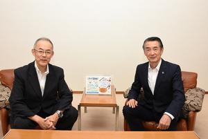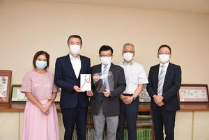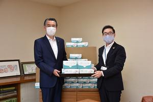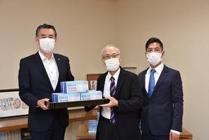 ●フェイスシールドの贈呈(第三中学校校友会) ●狛江市薬剤師会山村会長との対談