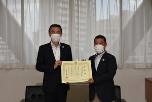 ●感謝状の贈呈(狛江市少年少女サッカー連盟矢島会長)