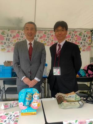 | こまえ桜まつり実行委員会委員長との記念撮影 |